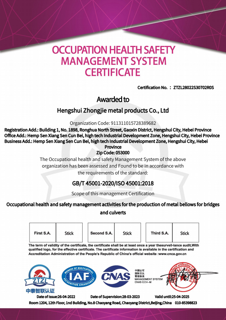 職業(yè)健康安全管理體系認(rèn)證證書英文